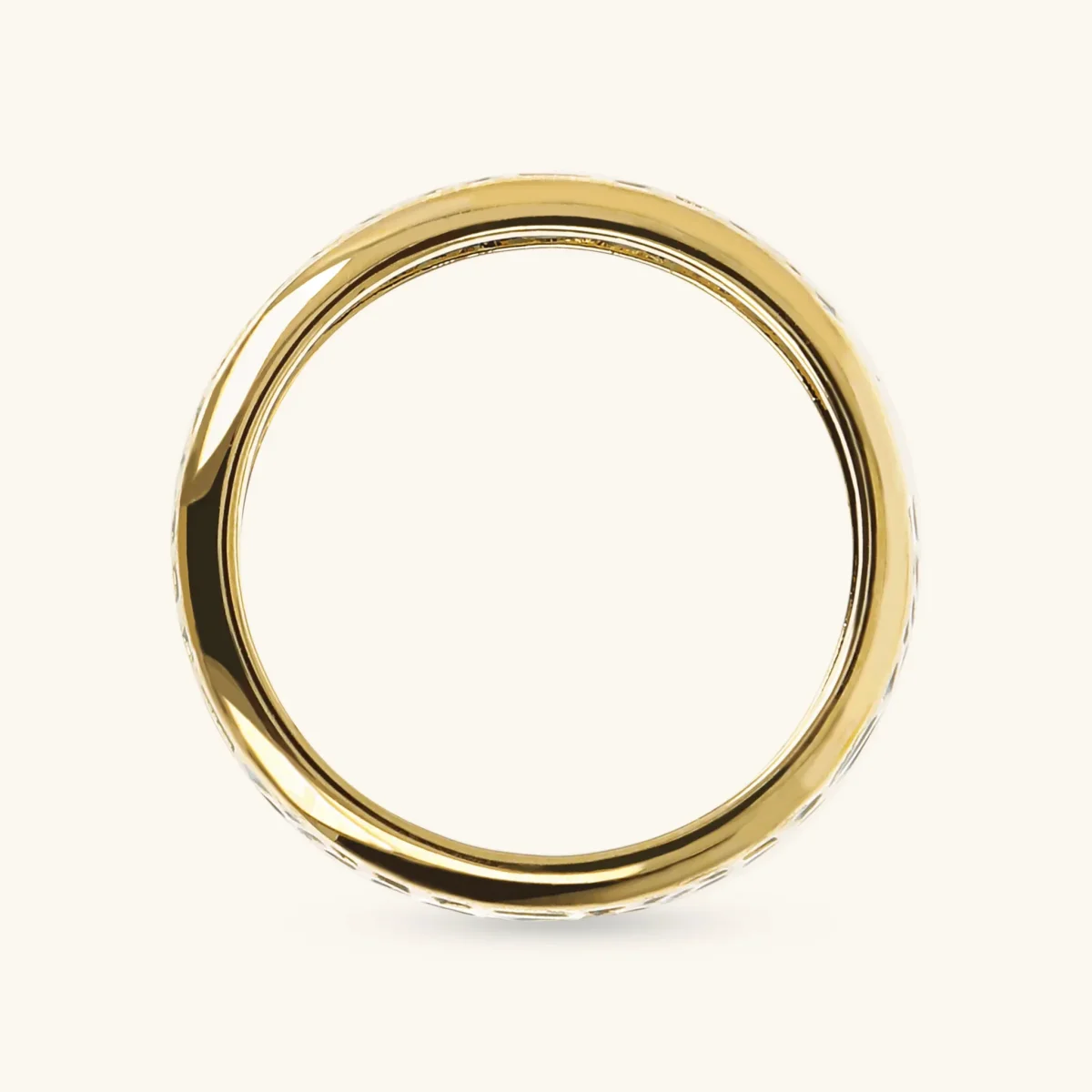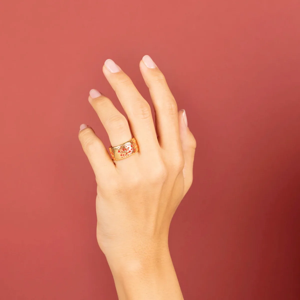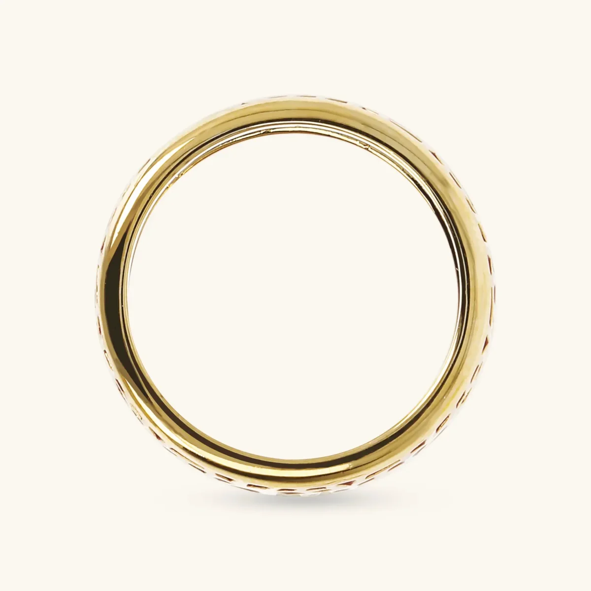 Anello a fascia Etrusca Gioielli realizzato in lega Golden, placcata oro giallo 18kt, dal design traforato con superficie smaltata di colore rosso, bianco o azzurro che richiama la tecnica del mosaico.