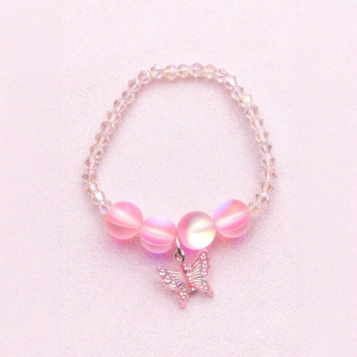 Questo braccialetto è un gioiello delicato e incantevole, perfetto per aggiungere un tocco di dolcezza e brillantezza al look della tua bambina. Le perline di cristallo trasparenti creano un effetto luminoso e scintillante, catturando la luce e aggiungendo un tocco di eleganza. Le perle olografiche rosa al centro del braccialetto cambiano colore a seconda della luce, creando un effetto magico e iridescente. Il ciondolo a forma di farfalla rosa aggiunge un tocco di dolcezza e leggerezza al braccialetto.