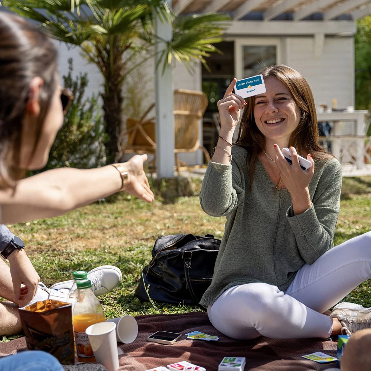 Un party game a squadre in cui dovrete mettervi alla prova! Per ogni turno, si dovrà indovinare o far indovinare più parole possibili alla propria squadra, in 1 solo minuto.Come? Mimando, cantando, parlando etc, a seconda del tema della prova. Ma non solo! Per ogni turno, le squadre dovranno pescare una carta sfida che aggiungerà del delirio al tutto, costringendo i giocatori ad effettuare un’altra azione nel mentre.Saprete ad esempio…🐰 MIMARE qualcuno che pulisce le finestre o vince alla lotteria mentre cantate come un cantante lirico?🐰 DESCRIVERE una persona, un luogo o un brand famoso ma parlando senza chiudere la bocca?🐰CANTICCHIARE il tema di Jurassic Park o gli Abba mentre ballate la break dance?🐰 IMPERSONARE una foca o un insegnante di yoga mentre intonate l’inno d’Italia?🐰 FINIRE LA CANZONE cantando Felicità o Xdono ma stando su un solo piede?🐰 BALLARE il flamenco, il can can o la macarena con espressione imbronciata?