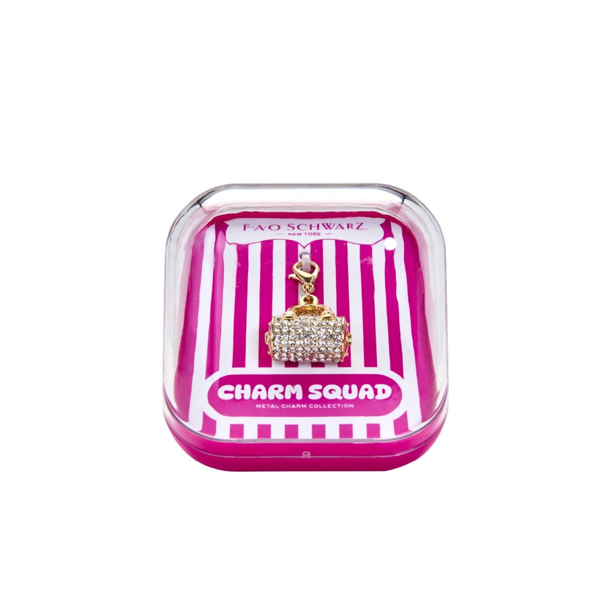 Porta il tuo stile a un livello superiore con il ciondolo per borsa FAO Schwarz® Charm Squad. Questa mini borsa tempestata di strass presenta smalto colorato, manici audaci e dettagli metallici scintillanti in tonalità iridescenti da sogno. Agganciala al tuo bracciale, alla tua collana o a qualsiasi altro accessorio per un tocco di glamour quotidiano. Che tu voglia abbinarli per un tocco di stile o per fare un regalo alla tua amica più speciale, questo ciondolo è un vero e proprio pezzo forte.