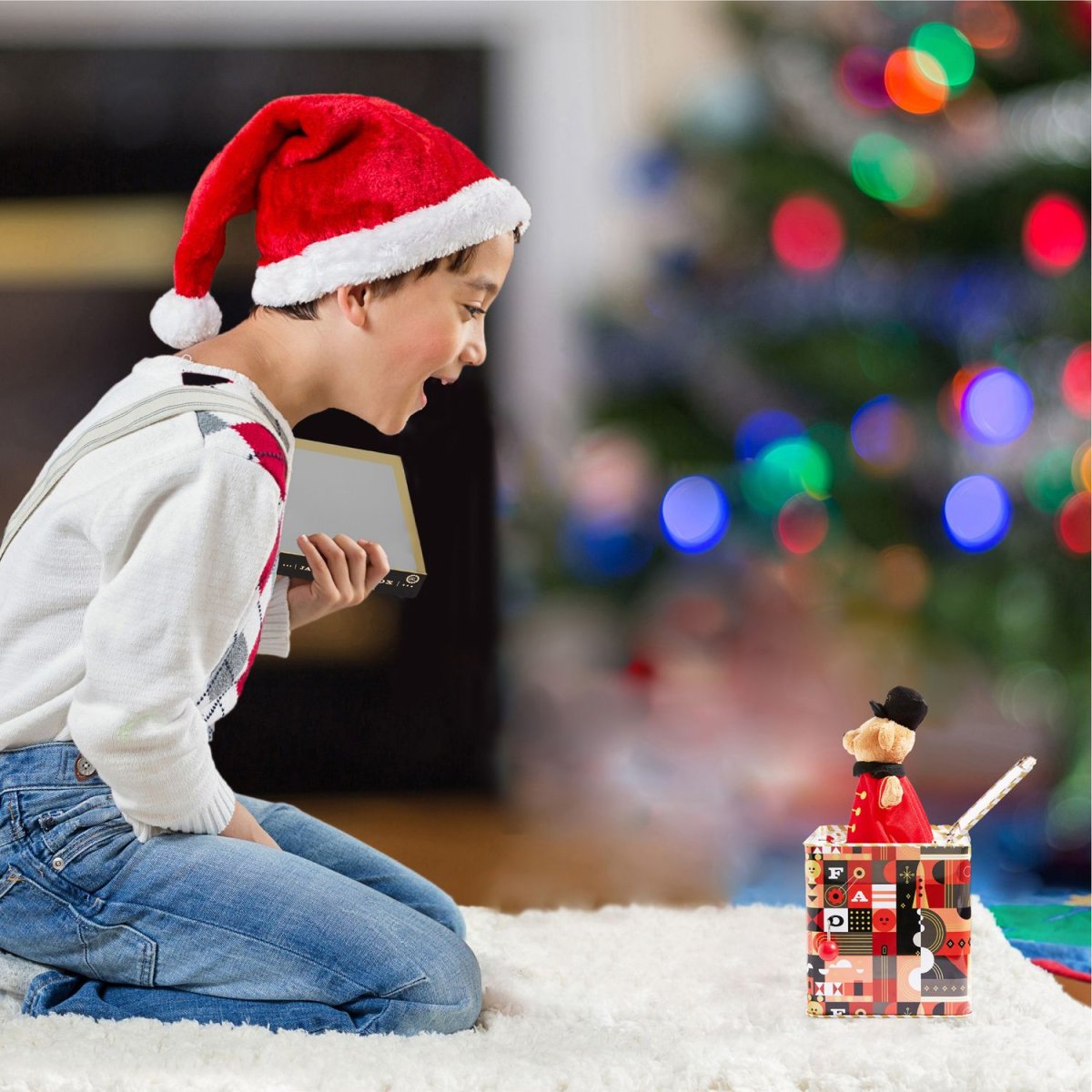 Il giocattolo Jack in the Box del direttore d’orchestra FAO Schwarz farà sicuramente sorridere ogni bambino. Basta alzare la maniglia per ascoltare musica e POP! Esce fuori un adorabile orso che indossa l’uniforme da musicista. Spingilo indietro e chiudi il coperchio per ricominciare il divertimento ancora e ancora. Orsetto morbidissimo e coccoloso, Rilassati e ascolta la musica per far apparire l’orso! Scatola in latta decorata con logo