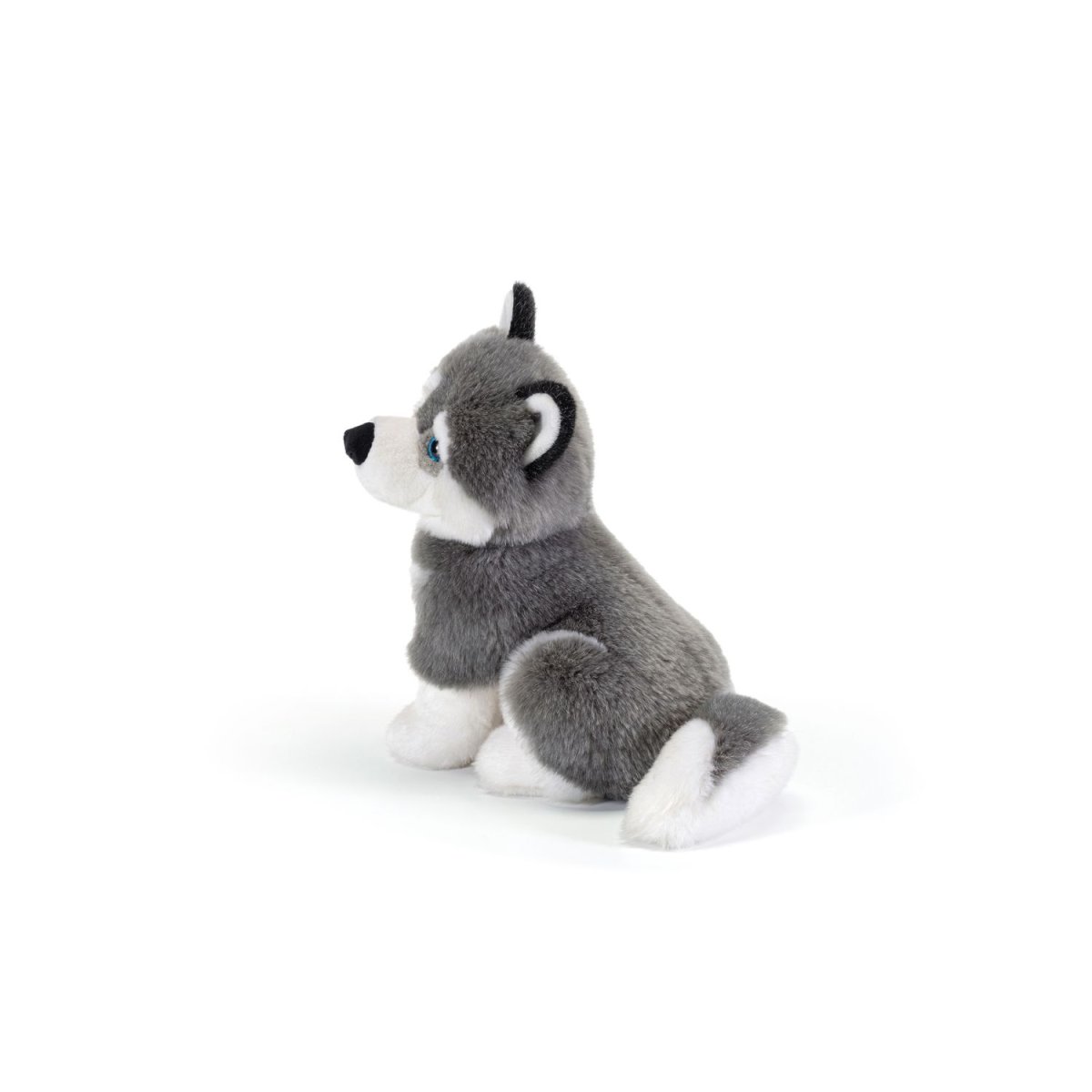 Il pelo e i colori utilizzati rappresentano fedelmente il Siberian Husky. Il dettaglio delle orecchie, l’alternanza dei grigi e bianchi nonchè la folta coda gli conferiscono un tocco realistico. La posizione è su quattro zampe e l’interpretazione è da cucciolo.